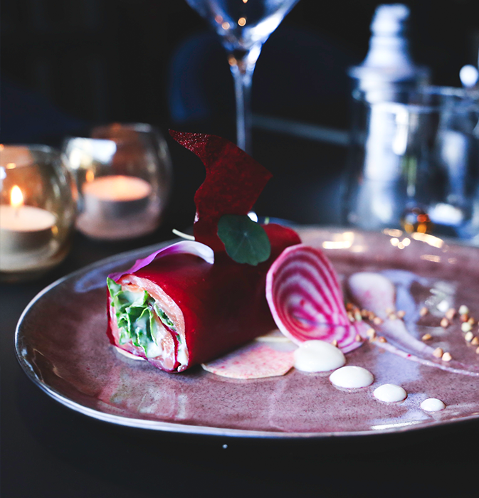 De keuken bereid exclusieve gerechten die qua presentatie de geweldige cocktails versterken. De Rolls Royce der houtovens is in de kleine keuken geplaatst. Deze is vanuit het restaurant te bewonderen. De pizza’s uit deze oven worden belegd met de mooiste producten zoals ribeye, pata negra en zelfs schaafjes verse truffel. De combinatie van Italiaans en Aziatisch zorgt voor interessante gerechten en laat de gast de uitdaging aangaan om nieuwe smaakbelevingen te ervaren.
